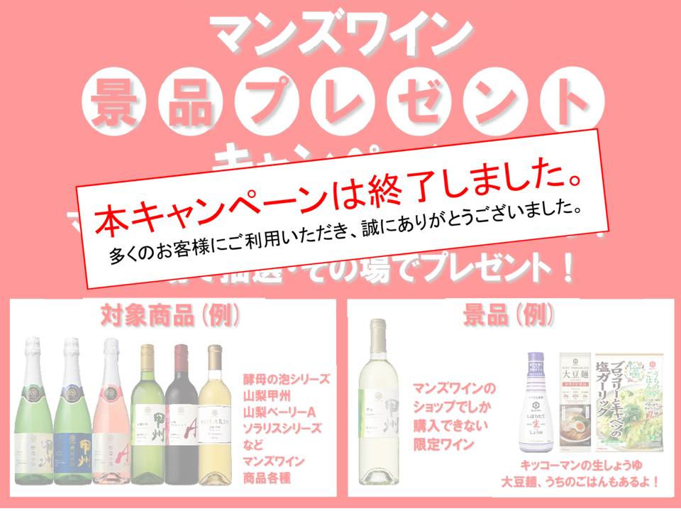 マンズワインをご購入で抽選にチャレンジ✨限定ワインなど素敵な景品が当たります❗ まだマンズワインを飲んだことがない方も、この機会にお楽しみいただけたら幸いです☺️